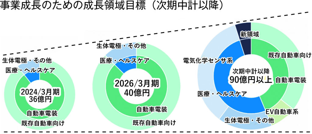 医療・ヘルスケア分野についても、電気化学センサや生体電極などを中心に開発を強化。高齢化の進展や医療機器市場の拡大を背景に、同分野を将来の成長領域の一つと位置付け、精密加工技術や回路技術を生かした製品開発を進める。