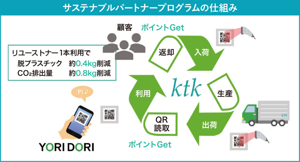 ケイティケイは、リユーストナーを自社が運営するオフィス向け総合ECサイト「YORIDORI」を通じて販売し、SPPもYORIDORIをプラットフォームに開発されている。同サイトは、リユーストナー・リユースインクをはじめとした環境価値とコストダウンを両立する同社製品や、オフィス関連の様々な商品、その他オフィスに役立つ情報を豊富に取り揃える。
