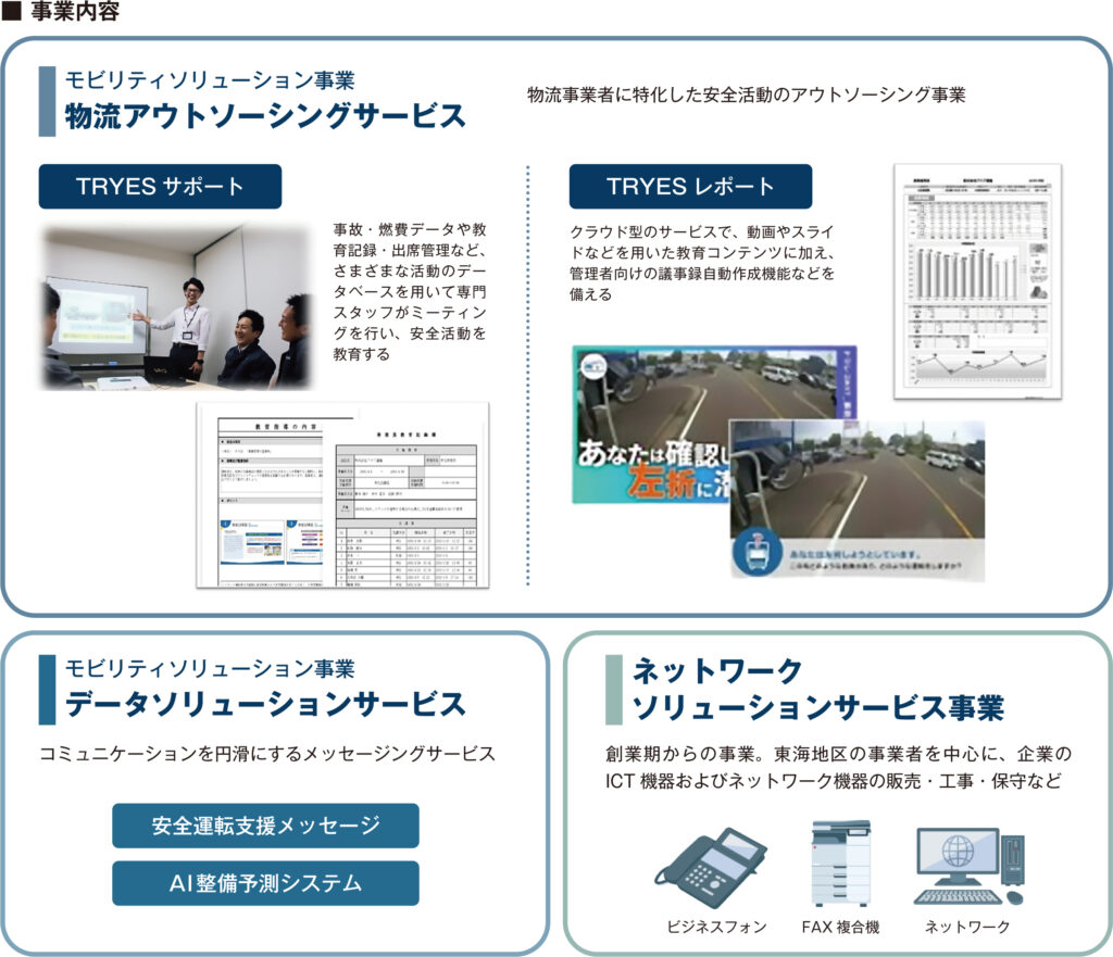 主力であり利益の7割を担う物流アウトソーシングサービスでは、運送事業者向け訪問型コンサルティング「TRYES(トライエス)サポート」と、クラウド型教育「TRYESレポート」を提供している。いずれも月額制のストックサービスだ。